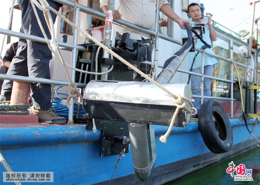 2015年10月短期包養11日,任包養網站務職員正在將水包養下聲吶探測儀器投進承平湖里。中國網圖片庫 施亞磊/攝